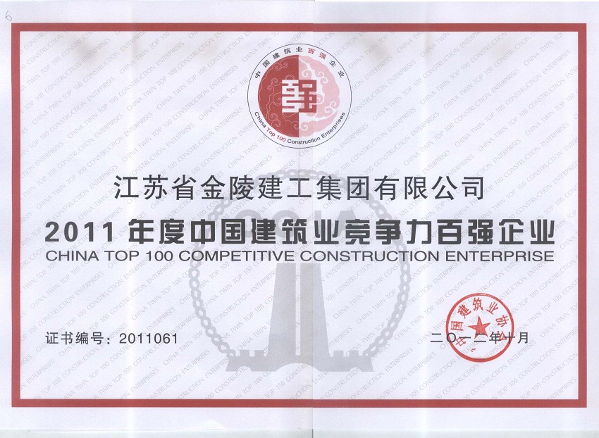 2011年度中國建筑業(yè)競爭力百強企業(yè)獎狀