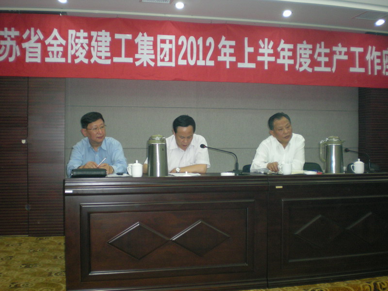 2012年4月29日下午2點整,江蘇省金陵建工集團2012年上半年度生產(chǎn)工作座談會在揚州市瓊都賓館三樓會議室召開。集團公司董事長范廣峰、總經(jīng)理席華武、副總經(jīng)理王重樂、何加森等出席了會議,會議由副總經(jīng)理王重樂主持。 此次會議主要有三個議題:一是由副總經(jīng)理王重樂同志對公司調(diào)整承包合同部分條款進行說明;二是由財務(wù)結(jié)算部經(jīng)理劉富一同志對公司財務(wù)管理制度和企業(yè)所得稅方面的規(guī)定進行講解;人力資源部經(jīng)理翟爽同志對各分公司社會保險繳納工作提出要求;最后由董事長范廣峰同志就集團公司工作中存在的問題進行剖析、說明,并對未來“做大做強”的發(fā)展目標,做出了明確要求和規(guī)劃性的部署。