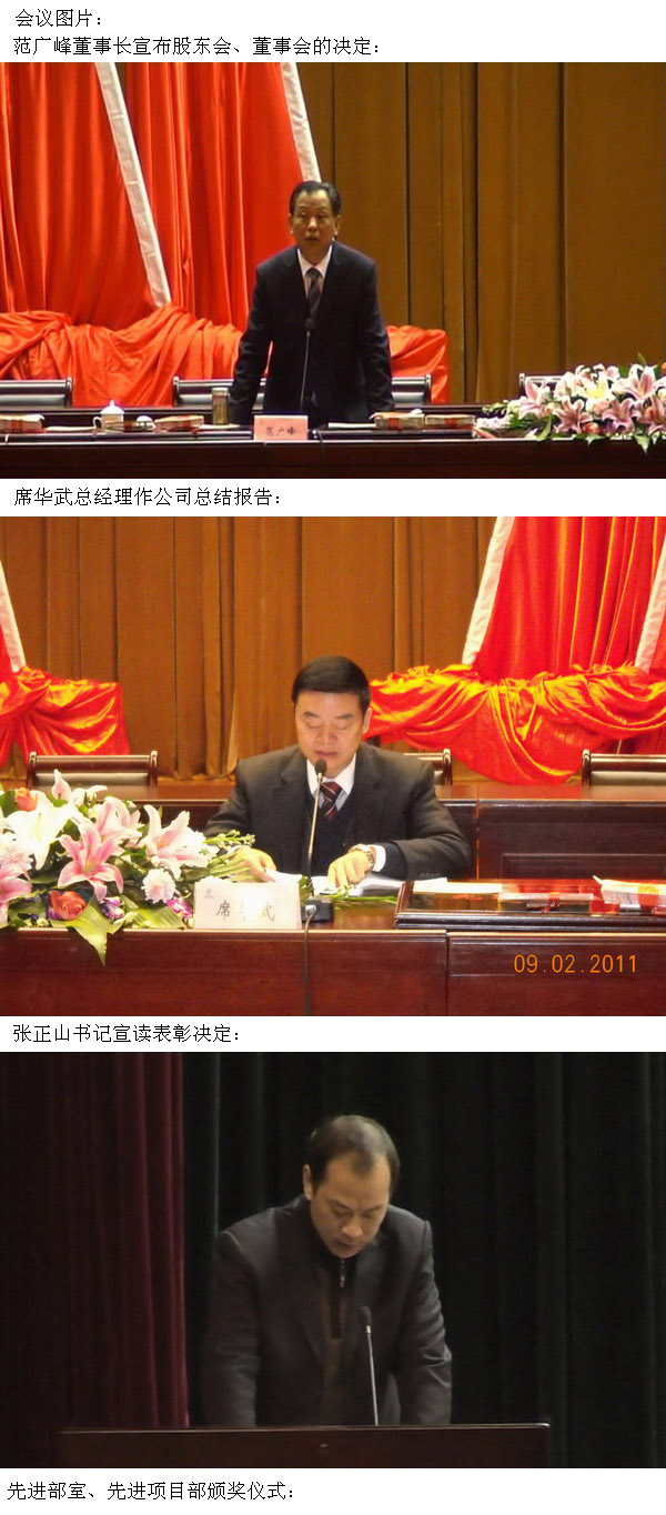 2011年2月9日下午2點整,江蘇省金陵建工集團生產工作暨2010年總結表彰大會在揚州會議中心隆重召開。 江蘇省金陵建工集團有限公司董事長范廣峰、總經理席華武、常務副總經理黃平、副總經理馮祥、副總經理何加森、副總經理王重樂及各分(子)公司、項目部、機關各部室等全體管理人員參加了此次會議,會議由集團公司副書記張正山致新年賀詞,常務副總經理黃平主持。 會上,范廣峰董事長鄭重宣布了股東會、董事會的決定;席華武總經理對集團公司2010年的工作作出總結;張正山副書記宣讀了集團公司表彰決定并舉行頒獎儀式;人力資源部、法律事務部、財務部、經營合約部等部門就2011年生產工作會議提出的問題在會上作出相關解答;一級建造師代表周青和先進個人代表魏杰相繼發(fā)言,逐一表態(tài)。會議末,范廣峰董事長對集團公司未來的發(fā)展作出規(guī)劃性部署和安排。
