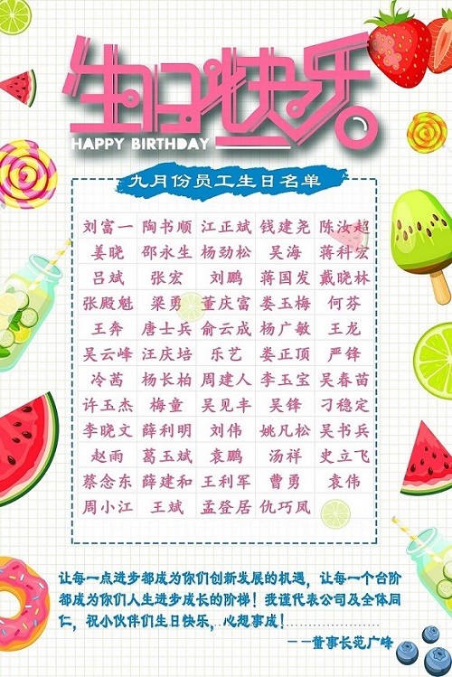 【生日祝福】恭祝9月生日的員工生日快樂!