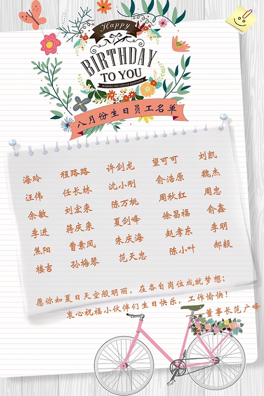 【生日祝福】恭祝8月生日的員工生日快樂(lè)!