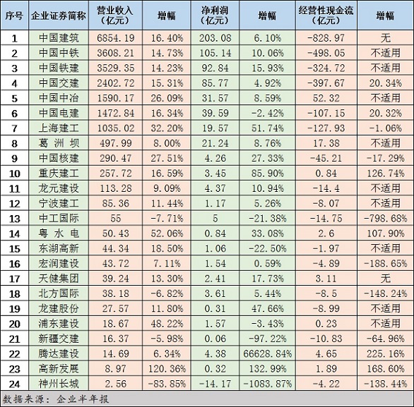 典型建筑業(yè)上市企業(yè)半年報(bào)透視:營收、凈利潤總體保持雙增長,“強(qiáng)者恒強(qiáng)”趨勢(shì)凸顯