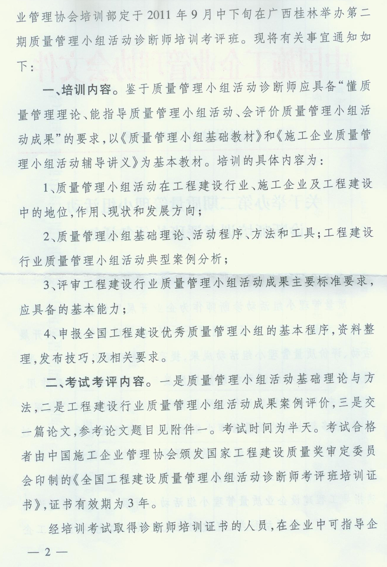 關(guān)于舉辦第二期質(zhì)量管理小組活動(dòng)診斷師培訓(xùn)考評(píng)班的預(yù)備通知