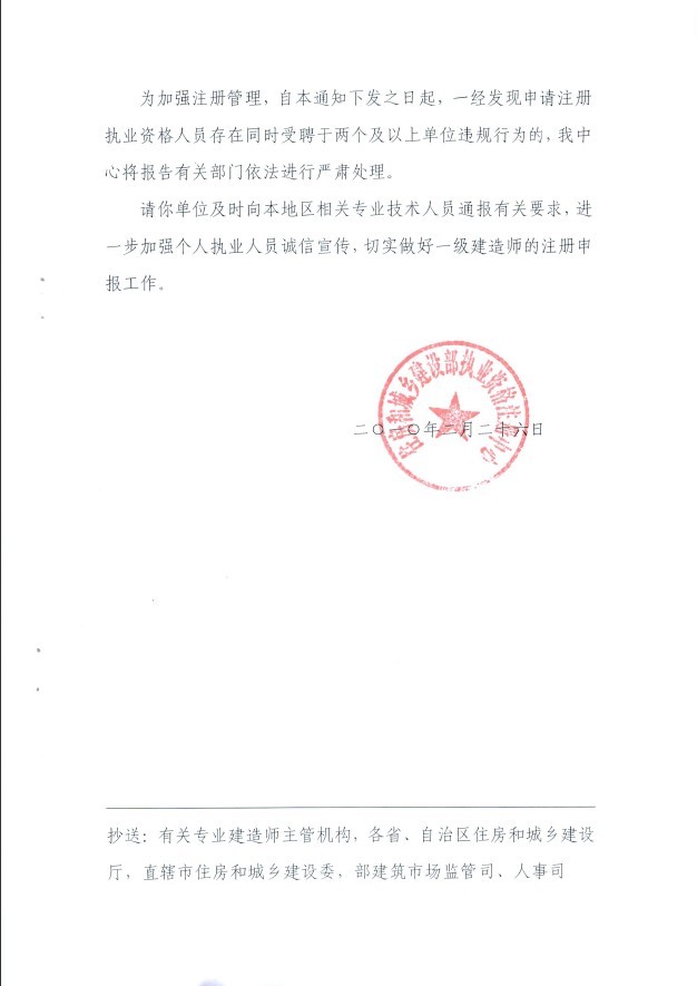 關(guān)于規(guī)范一級(jí)建造師注冊(cè)申報(bào)工作有關(guān)問題的函