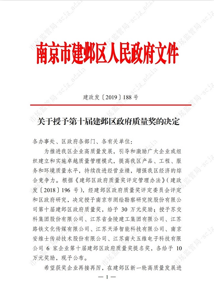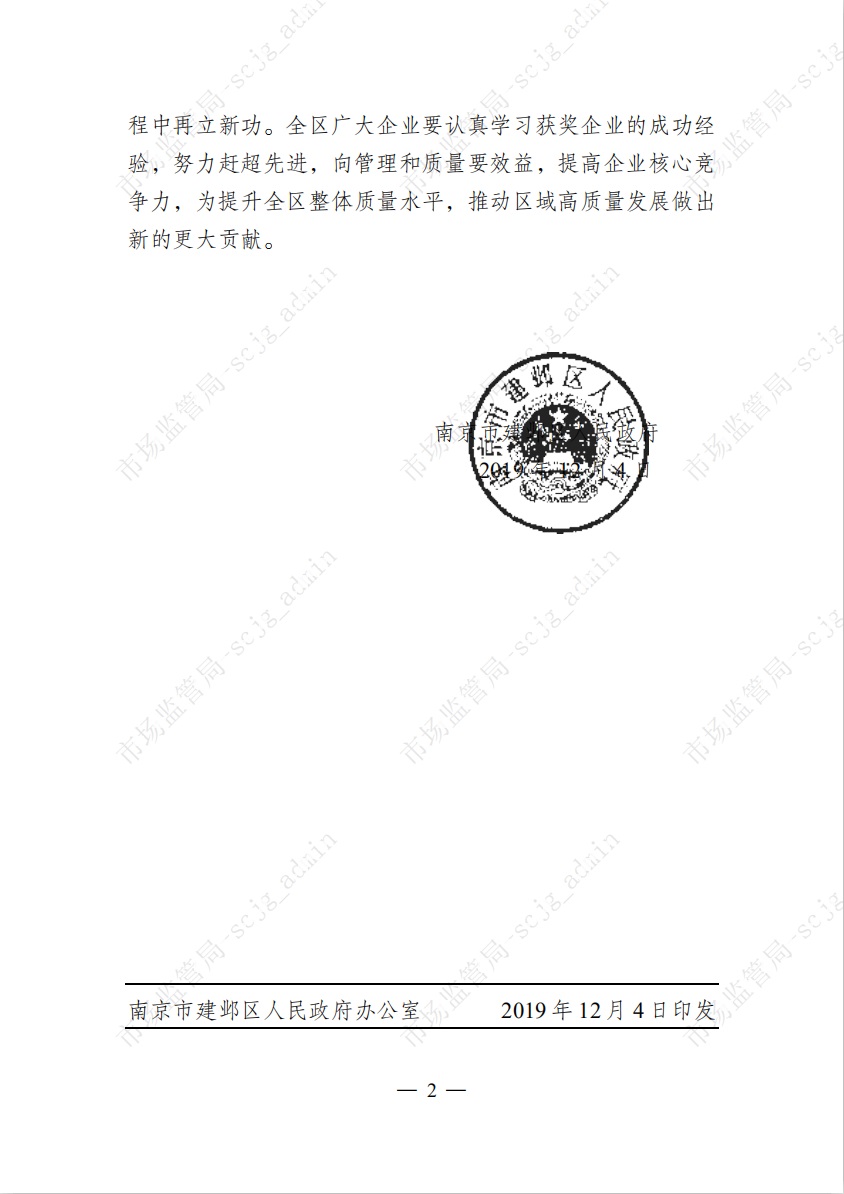 集團公司榮獲第十屆建鄴區(qū)政府質(zhì)量獎提名獎